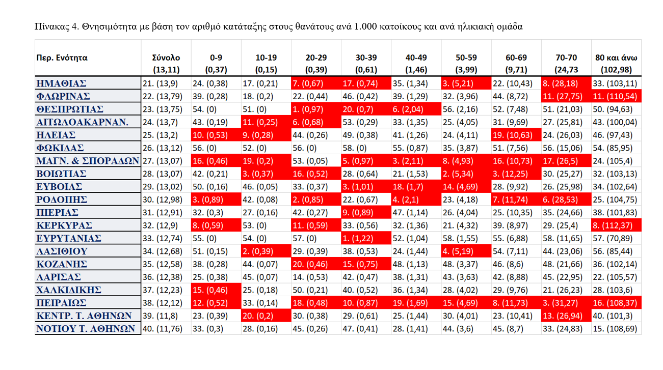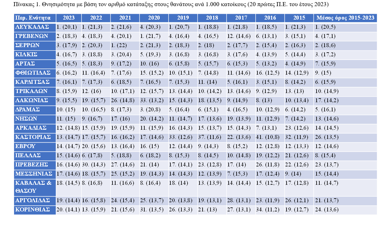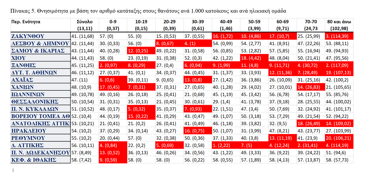 Η θνησιμότητα στις 58 περιφερειακές ενότητες της Ελλάδας – Μία σύγκριση