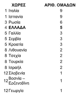 Πόσες ομάδες με τουλάχιστον 5 συμμετοχές στα ημιτελικά των Κυπέλλων Ευρώπης στο μπάσκετ έχει η κάθε χώρα (άνδρες – μέχρι και 2024)