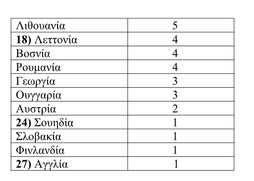 | 18) Λεττονία | 4 |