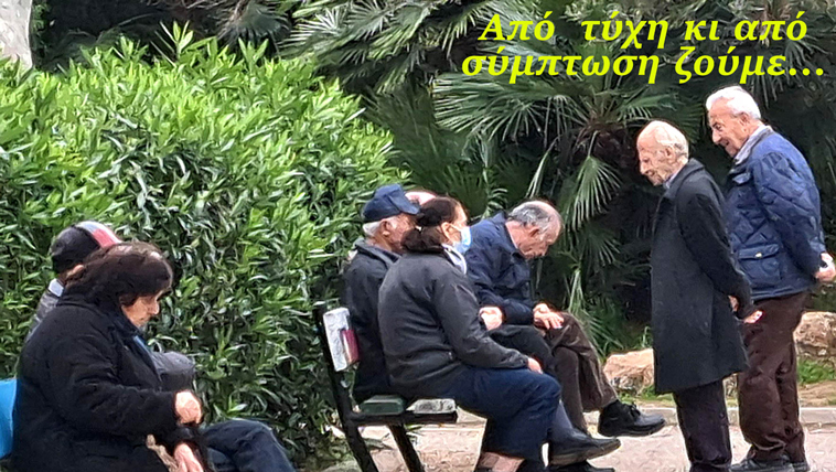 Μικρά, πάροδος: Υπάρχει ένα παρκάκι κοντά σ’ σπίτι μου, στα παγκάκια του οποίου αράζουν κάμποσοι ηλικιωμένοι. Κουβεντιάζουν, παίζουν κάνα ταβλάκι, οι άνδρες παίρνουν μάτι καμιά γαμπίτσα φρέσκια… Όταν περνάω, λέμε δυο κουβέντες, ρωτάω πώς νιώθουν και με μία αγνότητα πεντάχρονου παιδιού, ένας λέει «από τύχη κι από σύμπτωση ζούμε» κι άλλοι μουρμουρίζουν «είμαστε ξευτίλες», «ντρεπόμαστε» τέτοια!