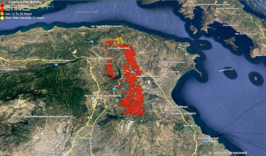 Η πύρινη λαίλαπα ξεκίνησε την Κυριακή από τον Βαρνάβα και λόγω των ισχυρών ανέμων η φωτιά πέρασε προς Καπανδρίτι, Λίμνη Μαραθώνα, Γραμματικό, Σταμάτα και Ροδόπολη. Δεν σταμάτησε όμως εκεί αλλά επεκτάθηκε άμεσα στον Διόνυσο, την Πεντέλη, στα Βριλήσσια, στο Χαλάνδρι, ακόμη και στο Γέρακα. Μια πύρινη λαίλαπα που επεκτείνεται σε μια ακτίνα πάνω από 30 χιλιόμετρα στην βορειοανατολική Αττική. Οι πυροσβέστες και οι εθελοντές δίνουν άνιση μάχη με τις φλόγες καθώς οι αναζωπυρώσεις είναι συνεχείς με αποτέλεσμα να έχουν γίνει στάχτη σπίτια, αυτοκίνητα, επιχειρήσεις, περιουσίες που χρειάστηκαν μια ολόκληρη ζωή για να δημιουργηθούν.