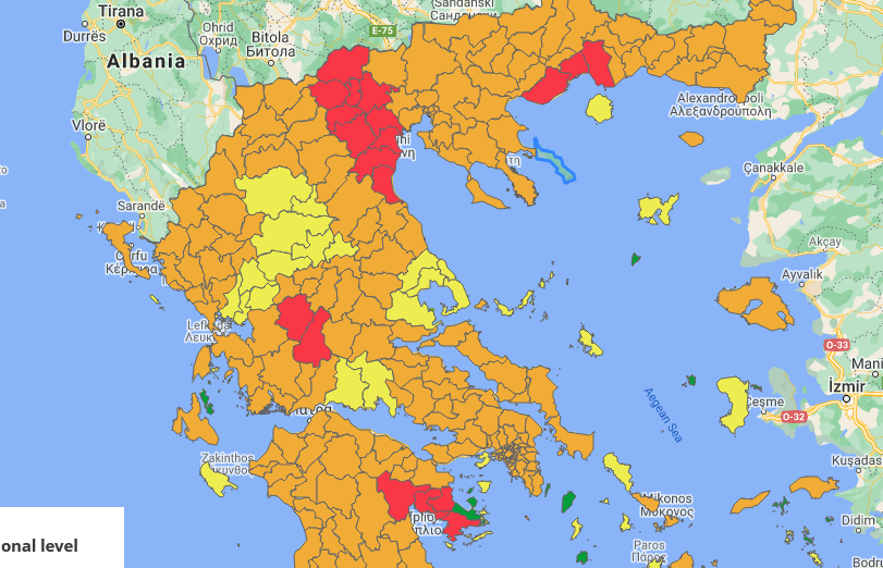 Στην Αχαΐα έχει εμβολιασθεί πλήρως το 48%, στην Ηλεία το 42%, στην Μεσσηνία το 50%, στην Αργολίδα το 55% (δείκτης θετικότητας 3,2%), στην Ικαρία το 54% (δείκτης θετικότητας στο 2,06%), στο Ηράκλειο το 56% (δείκτης θετικότητας 1,3%) και στην Ευρυτανία το 35% (δείκτης θετικότητας 5,03%).