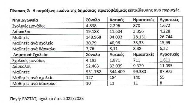 Από τον παρατιθέμενο πίνακα 2 προκύπτει ότι κατά το σχολικό έτος 2022/2023 (τελευταία στοιχεία) επί συνόλου 143.302 εκπαιδευτικών στην πρωτοβάθμια εκπαίδευση και δευτεροβάθμια εκπαίδευση οι αποσπασμένοι (23.717) και οι απόντες (5.367) είναι κατά 1,5 φορές περισσότεροι από τα … κενά των 20.000 εκπαιδευτικών που επεσήμαναν οι εκπρόσωποί τους!