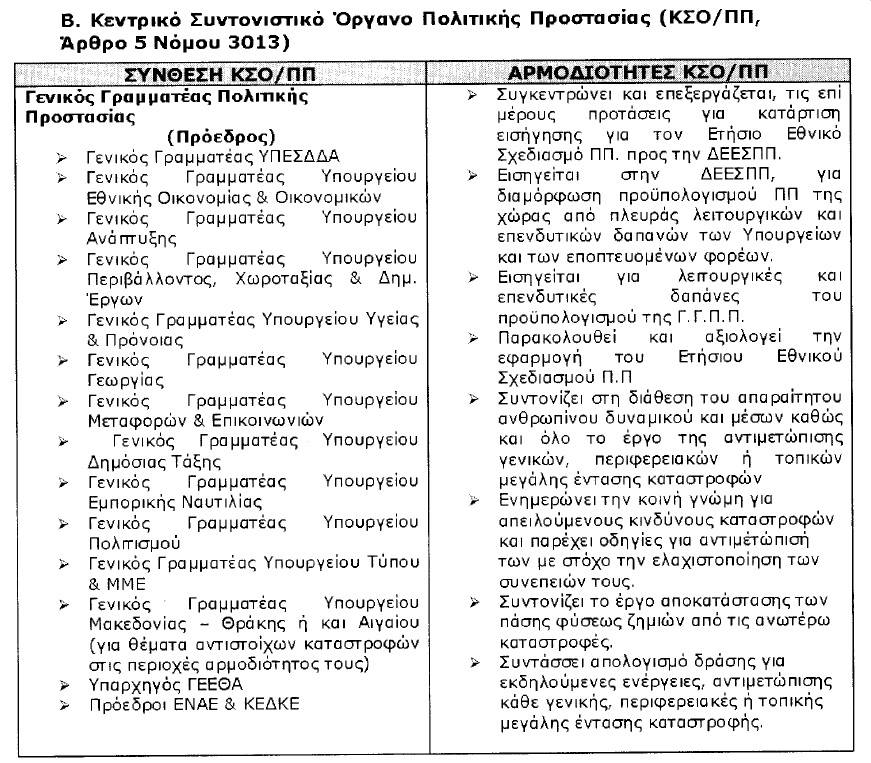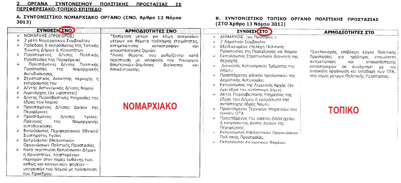 Ανάλογα, λοιπόν, με το μέγεθος της καταστροφής συγκαλούνται τα αρμόδια όργανα. Για μικρής έκτασης καταστροφή συγκαλείται στο Δήμο το (Συντονιστικό Τοπικό Όργανο). Αν η απειλή μεγαλώσει και απειλεί περιοχές εκτός του Δήμου, τότε συγκροτείται το Συντονιστικό Νομαρχιακό Όργανο. Αν δε η καταστροφή πάρει μεγαλύτερες διαστάσεις, όπως στη περίπτωση των τελευταίων πυρκαγιών, που ακόμη καίνε, τότε συγκροτείται το Κεντρικό Συντονιστικό Όργανο Πολιτικής Προστασίας.