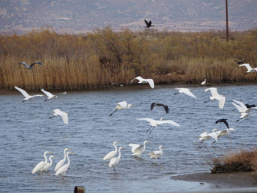 Άνοιξη και μετά από μια περίοδο βροχών, πλημμυρών και χιονόπτωσης, η φύση επιβάλλεται με τα δικά της χρώματα γαληνεύοντας το τοπίο. Είναι αυτή η μοναδική ομορφιά από τα ανθισμένα γιαλγκίνια όπως λένε τα αλμυρίκια οι ντόπιοι, σε έντονες ροζ, σε πιο παλ ή λευκές αποχρώσεις δημιουργώντας φυσικά λουλουδένια τείχη στις όχθες της. Είναι τα παρυδάτια καλάμια που αναγεννιούνται σε έντονο χρώμα και όπως θα πουν οι άνθρωποι που γνωρίζουν την περιοχή, αυξάνονται και πληθύνονται κατακυριεύοντας σημαντικό μέρος της έκτασής της .
