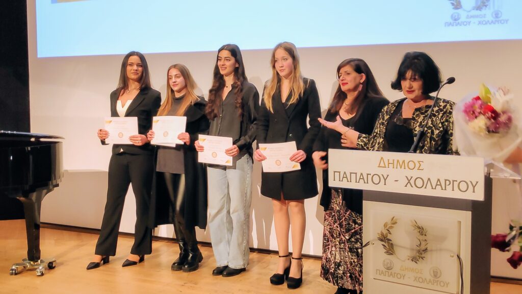 Η εκδήλωση ολοκληρώθηκε με επιβράβευση τεσσάρων νέων κοριτσιών που πέρασαν σε ΑΕΙ και στρατιωτική σχολή με την υψηλότερη βαθμολογία, στα πλαίσια των βραβείων αριστείας “Πίτσας Λιάπη” που καθιέρωσαν από το 2023 οι κόρες της αείμνηστης δημάρχου Παπάγου, από τις κόρες της Χάρις και Κατερίνα Λιάπη που αντιστοιχούσαν σε χρηματικό ποσό..