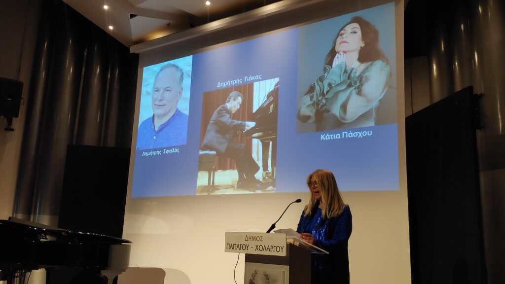 Ακολούθησε υψηλού επιπέδου μουσικό αφιέρωμα. Το κοινό χειροκρότησε τον τενόρο της Εθνικής Λυρικής σκηνής Δημήτρη Σιγαλό, που έχει τραγουδήσει σε 20 όπερες και 10 οπερέτες και σε περίπου 35 παραγωγές ή/και αναβιώσεις, την σοπράνο Κάτια Πάσχου, υψίφωνο, θεατρολόγο της Φιλοσοφικής Αθηνών και απόφοιτο του Mannes College of Music της Νέας Υόρκης, με σπουδές και υποκριτικής και πολλές εμφανίσεις στην διεθνή σκηνή, υπό τη συνοδεία του Δημήτρη Γιάκα, κορυφαίου Έλληνα πιανίστα συνοδοιπόρου τραγουδιστών σ’ ένα πρόγραμμα του διεθνούς ρεπερτορίου που εστίαζε στην γυναικεία ψυχή, το ταπεραμέντο και την ομορφιά στην ζωή μας.