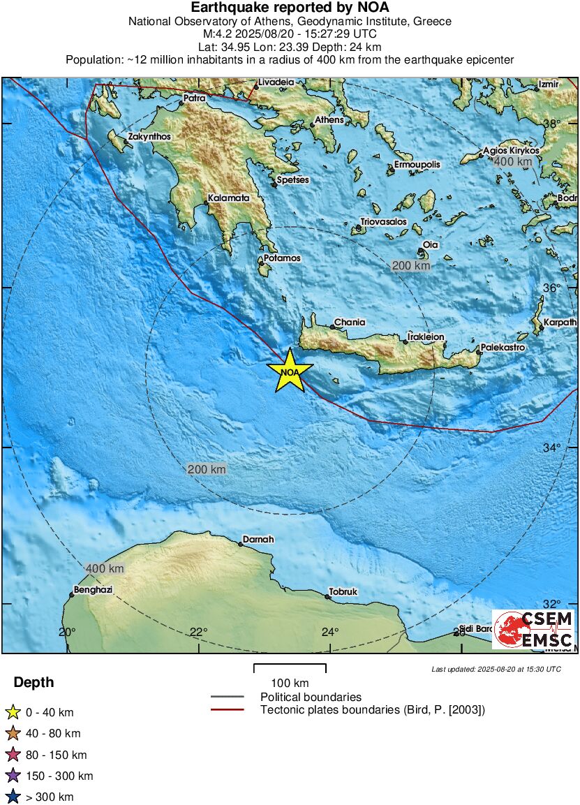 4,2 Ρίχτερ νοτιοδυτικά της Κρήτης