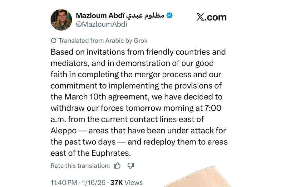 Οι Συριακές Δημοκρατικές Δυνάμεις (SDF, υπό την ηγεσία των Κούρδων) αποφάσισαν να αποσυρθούν από την ανατολική πλευρά του Χαλεπίου έως τις 7:00 το πρωί του Σαββάτου, σύμφωνα με τον διοικητή τους, Μαζλούμ Αμπντί.