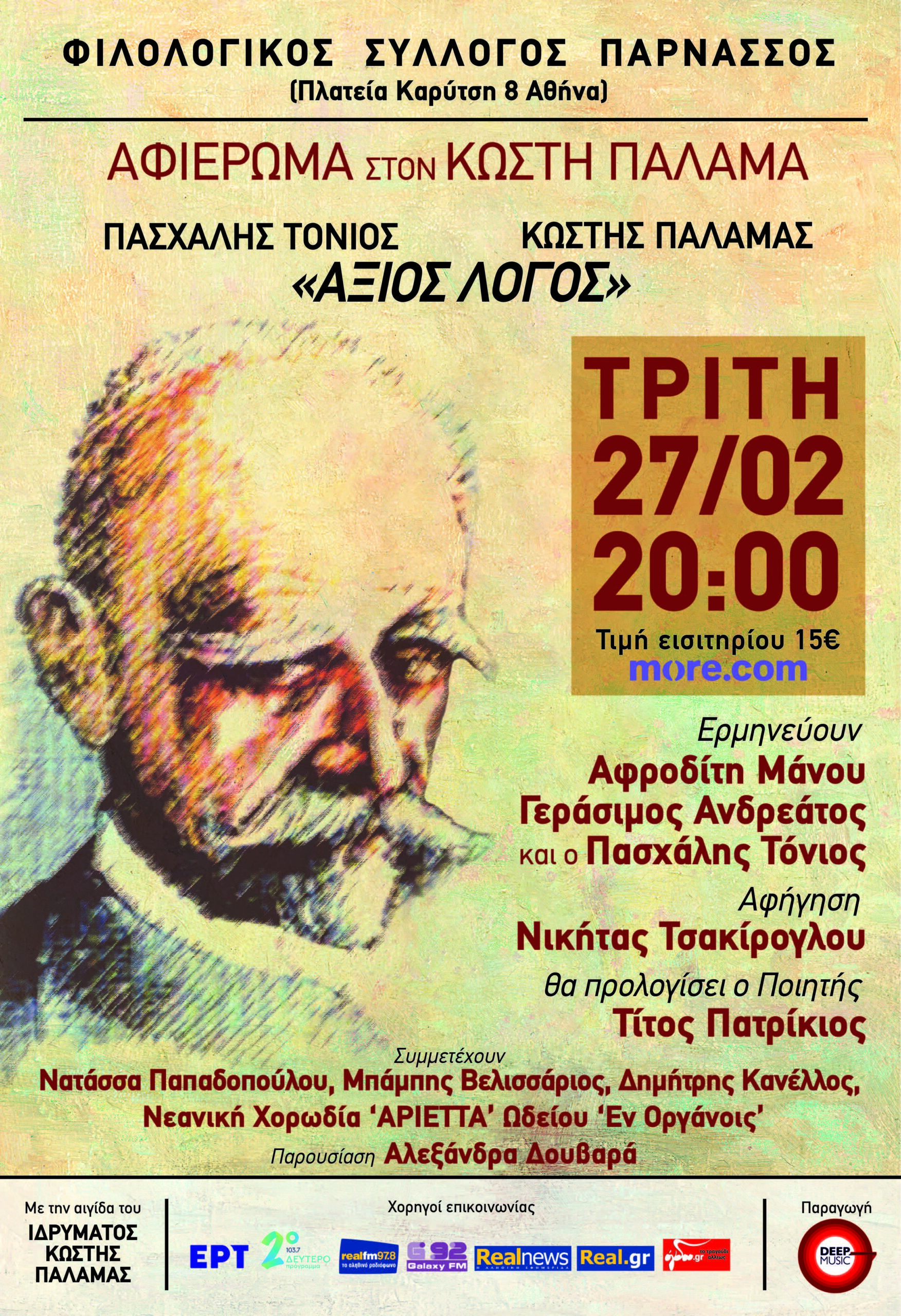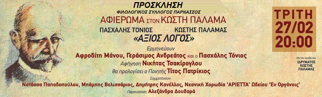 «ΑΞΙΟΣ ΛΟΓΟΣ» ΚΩΣΤΗΣ ΠΑΛΑΜΑΣ – 81 χρόνια μετά ένα μελοποιημένο έργο του Πασχάλη Τόνιου