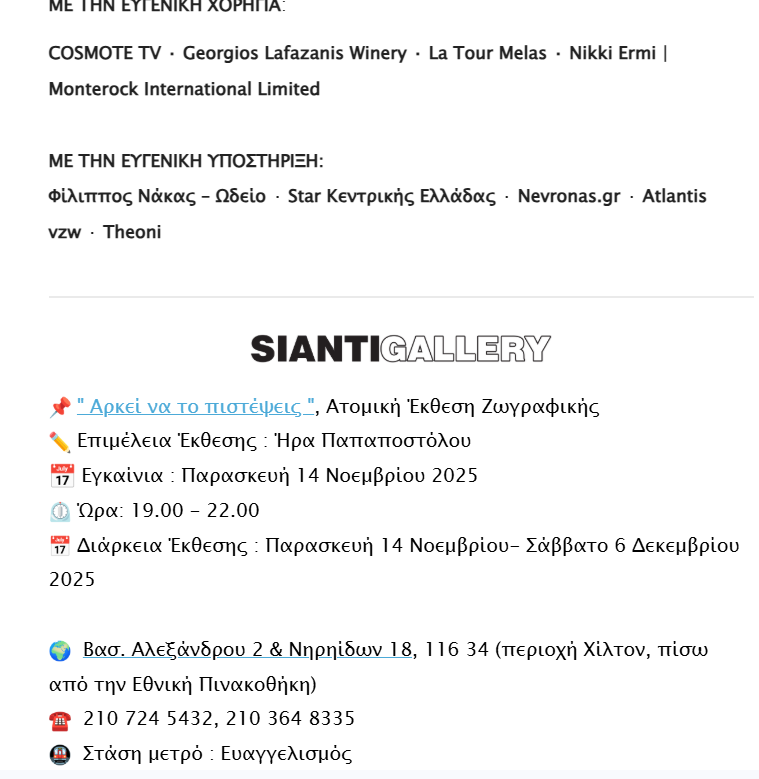 Η Sianti Gallery παρουσιάζει την έκθεση «Αρκεί να το πιστέψεις», ένα ταξίδι στην τέχνη, την αποδοχή και τη διαφορετικότητα — μια ματιά στον κόσμο μέσα από τα μάτια ενός παιδιού που μας θυμίζει ότι η πίστη μπορεί να ξεπεράσει κάθε όριο.