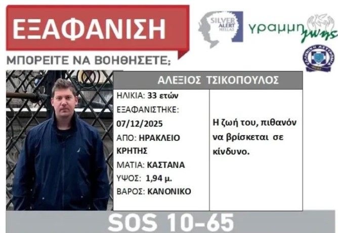 Αγωνιά η οικογένεια του νέου γιατρού που εξαφανίσθηκε στην Κρήτη. Ο γιατρός αντιμετώπιζε ψυχολογικά προβλήματα και είχε τηλεφωνήσει στον πατέρα του στη Θεσσαλονίκη “να πάει να μιλήσουνε γιατί δεν αισθανόταν καλά”, αλλά μετά του τηλεφώνησε να μην πάει. Ο πατέρας, χειρουργός ο ίδιος, πήρε όμως το πρώτο αεροπλάνο και κατέβηκε στην Κρήτη την ίδια μέρα.