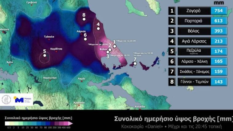 Στο Πήλιο τα τεράστια ύψη βροχής προκάλεσαν κατολισθήσεις και πλημμύρες με υπερχειλίσεις χειμάρρων ενώ η ορεινή ζώνη συνεχίζει να δέχεται ακραία βροχόπτωση. Κατά τις βραδινές ώρες τα φαινόμενα ήταν πιο ήπια σε σχέση με την Τρίτη, ενώ από τις πρωινές ώρες σήμερα Τετάρτη, τα ακραία φαινόμενα θα εντοπίζονται πιο δυτικά και συγκεκριμένα σε Θεσσαλία, Λάρισα, Καρδίτσα και Τρίκαλα. Για τη Μαγνησία αναμένονται πλημμυρικά φαινόμενα και υπερχειλίσεις χειμάρρων νότια από τον Άγιο Ιωάννη επειδή λειτουργεί σαν λεκάνη απορροής και φεύγουν τα νερά προς Αργαλαστή, Ξινόβρυση και παραλία Πάλτση.
