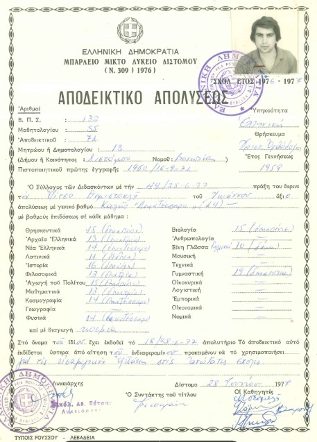 Το απολυτήριο αυτό το φυλάω μέχρι σήμερα. (σχετική φωτογραφία)