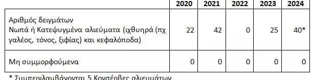 Ο ΕΦΕΤ ανακοίνωσε ότι διενεργεί κάθε χρόνο ελέγχους για τα επίπεδα βαρέων μετάλλων (υδράργυρο, μόλυβδο, κάδμιο) σε αλιεύματα ελληνικής και ευρωπαϊκής προέλευσης καθώς και τρίτων χωρών, συμπεριλαμβανομένων και αλιευμάτων σε κονσέρβες. Τονίζει ότι δεν έχει βρεθεί επιβαρυμένο ούτε ένα τα τελευταία χρόνια. Εντούτοις στον πίνακα που παραθέτει ως απόδειξη ότι όλα είναι εν τάξει, φαίνεται ότι λαμβάνονται μόνον 20 έως το πολύ 40 δείγματα κατ΄ έτος.