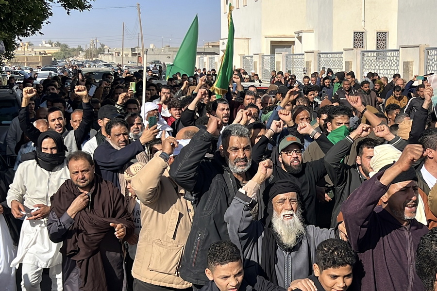 Πριν από την προσευχή της Παρασκευής, το πλήθος έκανε πορεία στο Μπάνι Ουάλιντ, κρατώντας την πράσινη σημαία της Λιβύης του Καντάφι και πορτρέτα του «Ηγέτη της Επανάστασης» και του γιου του. Οι διαδηλωτές φώναζαν συνθήματα όπως «το αίμα των μαρτύρων δεν χύθηκε μάταια» και «εκδίκηση για τον μάρτυρα».