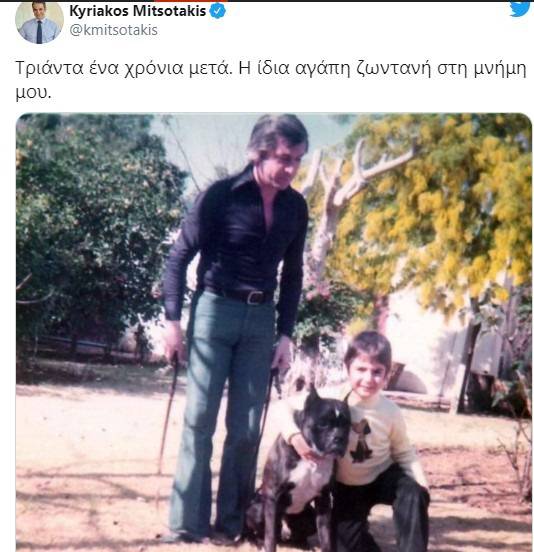Ο κ. Μητσοτάκης ανάρτησε μια φωτογραφία από την παιδική του ηλικία μαζί με τον αείμνηστο πολιτικό και έγραψε: «Τριάντα ένα χρόνια μετά. Η ίδια αγάπη ζωντανή στη μνήμη μου».
