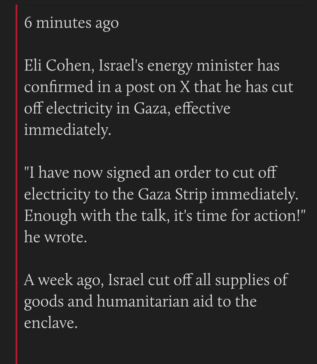 Την ίδια στιγμή, οι διαπραγματεύσεις επισκιάζονται από τον ισραηλινή απόφαση να διακόψει το ρεύμα στη Γάζα.
