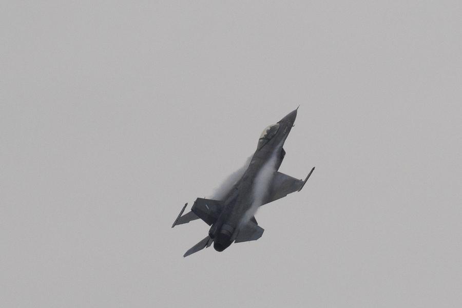 Ακολούθως, έφτασε και εκτέλεσε εικονικές προσβολές ποικιλία αεροσκαφών, ενώ πάνω από τον αστικό ιστό εμφανίστηκε το Μεμονωμένο Αεροσκάφους F-16 «Ζευς» της Ομάδας Αεροπορικών Επιδείξεων. Το αεροπορικό σόου έκλεισαν με εντυπωσιακή εμφάνιση τα πυροσβεστικά αεροσκάφη Canadair που έκαναν και επίδειξη ρίψης νερού σε χαμηλό ύψος, η διέλευση των μεταγωγικών αεροσκαφών C-130 και C-27 με τον επετειακό διάκοσμό τους και οι διελεύσεις σε σχηματισμό όλων των μαχητικών της ΠΑ της χώρας, περάσματα που συνοδεύτηκαν από χειροκροτήματα και χιλιάδες φωτογραφικά πλάνα και βίντεο.
