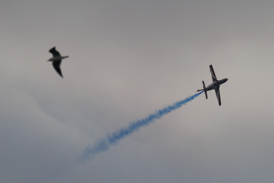 Το εκπαιδευτικό δίδυμο της ΠΑ, το ταχύ τζετ εκπαιδευτικό αεροσκάφος Aermacchi Μ-346 που πέταξε με το Τ-6Α «Δαίδαλος», άνοιξαν το αεροπορικό σόου και στη συνέχεια η παραλία μετατράπηκε σε έναν δυναμικό καμβά ζωγραφικής από τις διελεύσεις αεροσκαφών της Πολεμικής Αεροπορίας με μαχητικά της Πολιτικής Αεροπορίας, τους Egyptian Silver Stars με τα 10 ευέλικτα εκπαιδευτικά jet αεροσκάφη K-8E Karakorum, τους εντυπωσιακούς σχηματισμούς με όλους τους τύπους των μαχητικών της ΠΑ, το αληθοφανές, δυναμικό dogfight ανάμεσα σε αεροσκάφος Dassault Rafale F3R και F-16, την πτήση όλων των μαχητικών της ΠΑ όπως και του ΑΣΕΠΕ αεροσκάφους Erieye EMB-145 AEW&C, τα ντουέτα που απελευθέρωναν φωτοβολίδες στις κλειστές μανούβρες τους. Επίσης, το θρυλικό Harvard, που όχι μόνο εκτέλεσε το πρώτο πέρασμά του πάνω από το ελληνικό κοινό μετά από 60 χρόνια, ανακατασκευασμένο και υπερήφανο, αλλά έδωσε και ένα θέαμα διαρκείας-έκπληξη στο κοινό.