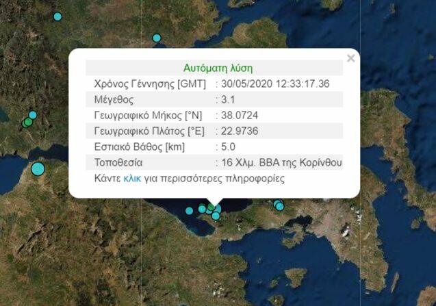 Σύμφωνα με το Γεωδυναμικό Ινστιτούτο, ο σεισμός σημειώθηκε στις 15:33, με επίκεντρο 16 χιλιόμετρα από την πόλη της Κορίνθου.