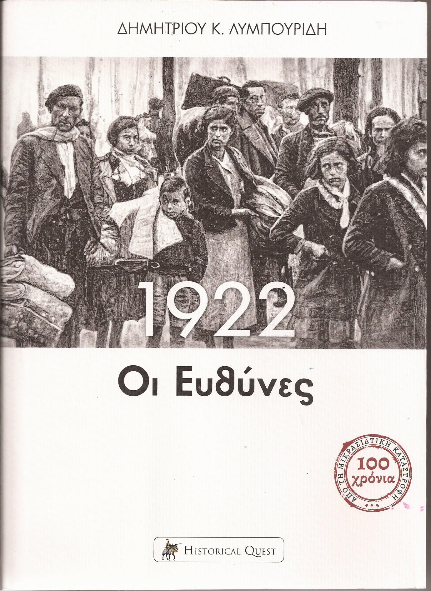 Το πρώτο θέμα για τις ευθύνες για τη Μικρασιατική Καταστροφή θα το παρουσιάσει ο Δημήτρης ΛΥΜΠΟΥΡΙΔΗΣ, με αφορμή την έκδοση της πολύχρονης έρευνάς του από τις εκδόσεις Historical Quest. Στο βιβλίο του με τίτλο “1922. Οι Ευθύνες” παραθέτει τα γεγονότα και καταθέτει με τόλμη τη δική του ερμηνεία για τη Μικρασιατική Καταστροφή. Η ετυμηγορία του ως ιστορικός ερευνητής είναι αυστηρή μεν, ακριβοδίκαιη δε. Κάποιος μπορεί να μη συμφωνήσει μαζί της. Δεν μπορεί όμως να διαφωνήσει με τα γεγονότα στα οποία την στηρίζει. Αυτά μιλούν από μόνα τους.