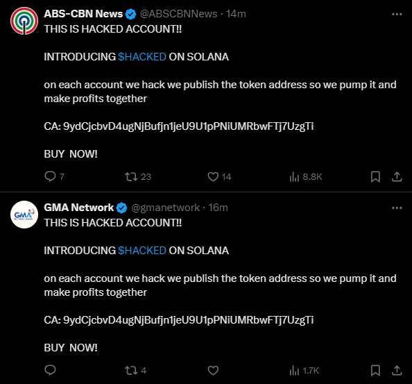 Στους χακαρισμένους λογαριασμούς εμφανιζόταν αυτό το μήνυμα: