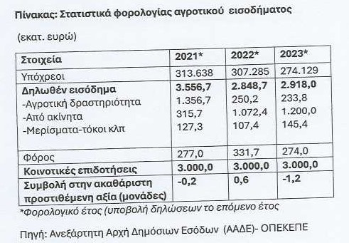 Επίσης, στον “Οικονομικό Ταχυδρόμο” (30 Δεκεμβρίου 2021) σε άρθρο με τίτλο «Κρατικοδίαιτοι: Η νέα τάξη Ελλήνων… “εισοδηματιών”, αποκάλυπτα, μεταξύ πολλών άλλων επιδοματούχων, ότι ο Οργανισμός Πληρωμών και Ελέγχου Κοινοτικών Ενισχύσεων Προσανατολισμού και Εγγυήσεων (ΟΠΕΚΕΠΕ) στην ιστοσελίδα του αναφέρει υπερηφάνως ότι καταβάλλει ετησίως περίπου 3 δισ. ευρώ σε… 900.000 “δικαιούχους” αγρότες-κτηνοτρόφους, ενώ εκείνοι που υποβάλλουν φορολογικές δηλώσεις είναι μόνο περίπου 310.000 και δηλώνουν… ισόποσο εισόδημα (3 δισ. ευρώ), χωρίς αυτό να προκαλέσει παρέμβαση της Ανεξάρτητης Αρχής Δημόσιων Εσόδων, που ανακοινώνει τα στοιχεία αυτά για τη φορολογία εισοδήματος…
