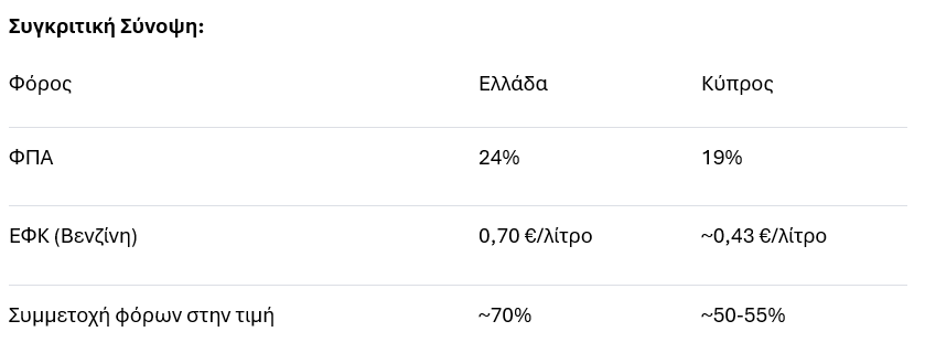 Έτσι στην Κύπρο οι συντελεστές είναι σημαντικά χαμηλότεροι, καθιστώντας την μία από τις φθηνότερες χώρες της ΕΕ για βενζίνη.