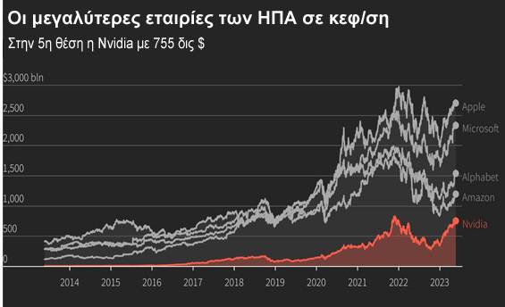 Για όλους αυτούς τους λόγους που προαναφέραμε, η παγκόσμια αγορά αγνόησε τη διψήφια πτώση των καθαρών εσόδων της NVIDIA από έτος σε έτος. Να τα λέμε κι αυτά! Φαίνεται ότι η δήλωση του επικεφαλής της Χουάνγκ, ότι «οι εταιρείες αρχίζουν να συναγωνίζονται μεταξύ τους για να εφαρμόσουν γενετική Τεχνητή Νοημοσύνη σε κάθε πιθανό προϊόν, επιχειρηματική διαδικασία και υπηρεσία», έκανε τους επενδυτές να θεωρήσουν αυτή την πτώση σαν… λεπτομέρεια μπροστά στο όραμά του.