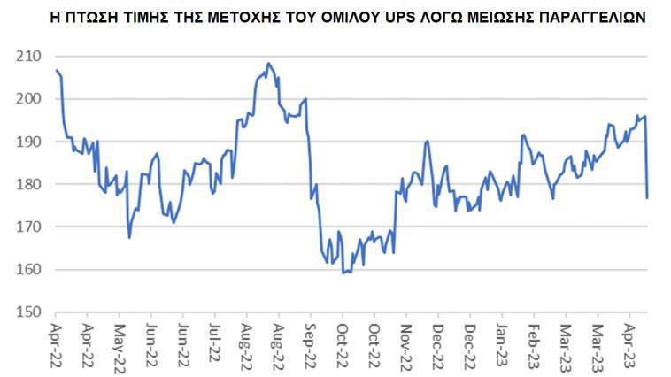 Ο γνωστός ταχυδρομικός όμιλος UPS που διαχειρίζεται εμβάσματα σημειώνει απώλειες της τάξης του 10% στην τιμή της μετοχής του στις 25 Απριλίου, όταν στην οικονομική έκθεση του πρώτου τριμήνου, δημοσιεύει αποτελέσματα χαμηλότερα των αναμενόμενων. Τα έσοδα υποχωρούν απροσδόκητα στα 22,9 δισεκατομμύρια δολάρια, έναντι 24,4 δισεκατομμυρίων του πρώτου τριμήνου του 2022, με τον όμιλο να αποδίδει την κάμψη στην πτώση των πωλήσεων λιανικής και την απότομη υποχώρηση της κατανάλωσης.