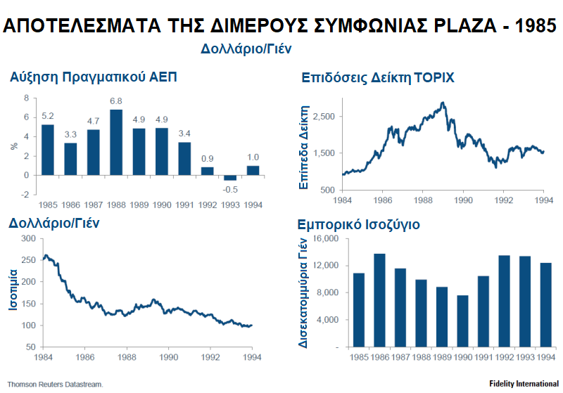 Tο 1985 οι Αμερικανοί επιτυγχάνουν πάντως μία πρώτη νίκη τακτικής με την Συμφωνία Plaza (Plaza Accord), που προβλέπει την απελευθέρωση των συναλλαγματικών ισοτιμιών των νομισμάτων ΗΠΑ και Ιαπωνίας με την είσοδο σε καθεστώς ελεύθερης διακύμανσης στις αγορές. Οι Ιάπωνες αποδέχονται τελικά να επιβάλλουν ένα πρόγραμμα περιορισμού εξαγωγών αυτοκινήτων προς τις ΗΠΑ (Voluntary Export Restraint-VER), αίροντας το πρόβλημα των δασμών, που παραμένουν όμως σε ισχύ για τα υπόλοιπα προϊόντα τους έως τα τέλη της δεκαετίας.