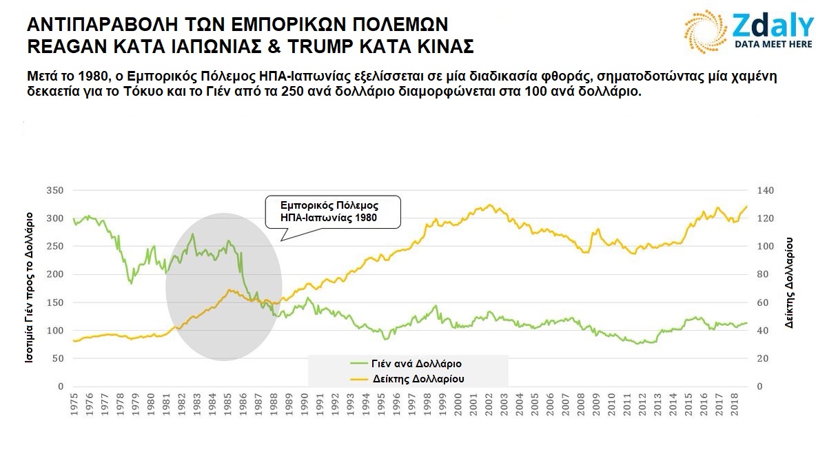 Ειδικότερα η αμερικανική κυβέρνηση επιβάλλει δασμούς της τάξης του 100% στα ηλεκτρονικά, με παράλληλες ισχυρές πιέσεις για την επίτευξη συμφωνίας εθελούσιου περιορισμού των εξαγωγών προς τις ΗΠΑ αυτοκινήτων, χαλύβων, μηχανουργικών διατάξεων και εργαλείων.