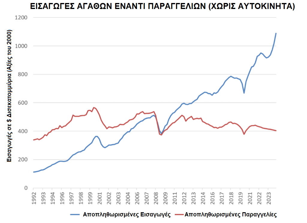 Δασμοί της τάξης του 15% και άνω θα αυξήσουν σημαντικά το κόστος για τις αμερικανικές επιχειρήσεις, με τις εισαγωγές κεφαλαιουχικών αγαθών (εξαιρουμένων των αυτοκινήτων) να εκρήγνυνται μετά την υγειονομική κρίση κατά την διάρκεια της κυβέρνησης Biden,με την αύξηση να φθάνει το 50%. Οι ΗΠΑ έχουν την μεν δυνατότητα παραγωγής των συγκεκριμμένων αγαθών, αλλά βραχυπρόθεσμα θα αναγκασθούν να προβούν σε εισαγωγές αρκετών για να επεκτείνουν την εσωτερική παραγωγική δραστηριότητα, οπότε σταδιακά θα μειωθεί η ζήτηση από το εξωτερικό.