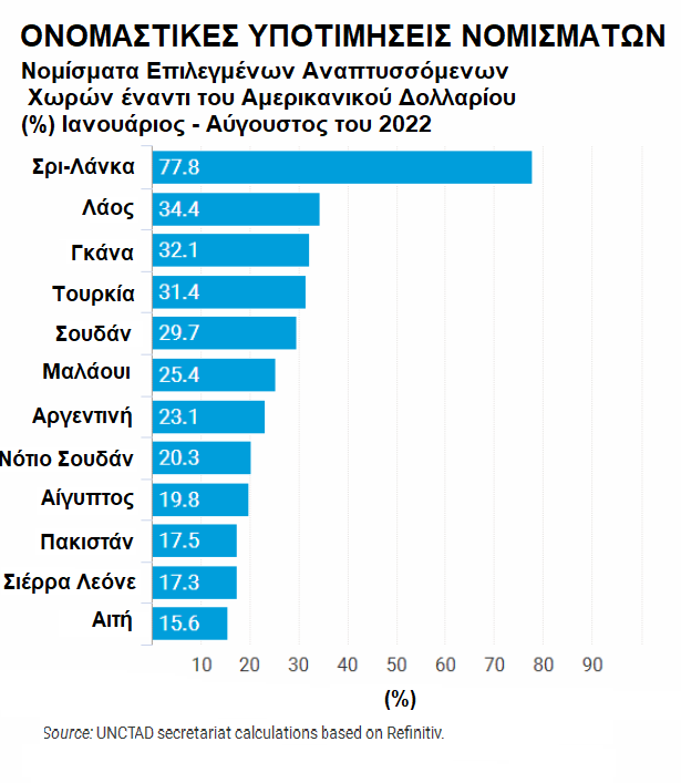 Στην πραγματικότητα οι αναδυόμενες οικονομίες χρηματοδοτούν τις αναπτυγμένες, από την στιγμή που οι αυξήσεις των επιτοκίων προκαλούν μαζικές μετακινήσεις κεφαλαίων και πλήττουν ανελέητα τις πλέον ευάλωτες, ενώ τουλάχιστον 90 αναπτυσσόμενες χώρες αντιμετωπίζουν την υποτίμηση των εθνικών τους νομισμάτων έναντι του αμερικανικού δολαρίου.