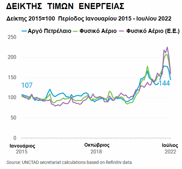 Αρκετά σημεία της έκθεσης της UNCTAD απευθύνονται στην αναφορά προς τους επενδυτές του γνωστού επενδυτικού οίκου με εξειδίκευση στις αναδυόμενες αγορές Capital Economics. Μεταξύ των άλλων επισημαίνει πως ο παγκόσμιος βιομηχανικός δείκτης Αγορών των Διευθυντών των Εταιρειών (Purchasing Managers’ Index-PMI), που καταγράφει τις μεταβολές της βιομηχανικής δραστηριότητας, καταδεικνύει πως οι βιομηχανίες ανά την υδρόγειο εξασθενούν σημαντικά και οι επιδόσεις τους θα επιδεινωθούν λόγω των πληγμάτων της ανόδου του πληθωρισμού και των αυξήσεων των επιτοκίων.
