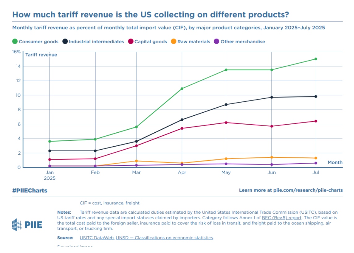 Ο γενικός δείκτης τιμών καταναλωτή αυξήθηκε περίπου κατά 2,2% μεταξύ Ιανουαρίου και Αυγούστου. Αλλά, σύμφωνα με το Peterson Institute for International Economics, τα τελωνειακά έσοδα για τα καταναλωτικά αγαθά αυξήθηκαν κατά 13% την ίδια περίοδο, σε σύγκριση με την αξία των εισαγόμενων αγαθών. Ποιος πλήρωσε τη διαφορά; Οι μόνοι που έμειναν στη μέση: Οι Αμερικανοί εισαγωγείς. Πολλοί αναμένουν ότι στο μέλλον, αυτές οι αυξήσεις τιμών θα μετακυλιστούν τελικά στους καταναλωτές. Αλλά, προς το παρόν, οι δασμοί που γιορτάζει ο Τραμπ είναι πάνω απ’ όλα ένας γιγαντιαίος φόρος στις αμερικανικές εταιρείες και τα περιθώρια κέρδους τους!