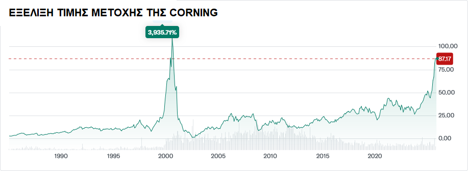 Μετά το 1990 η CORNING (Κωδικός NYSE: GLW) αναδεικνύεται στην αγαπημένη εταιρεία της καινοτομίας και της νέας τεχνολογίας, χάρη στην επινόηση των οπτικών ινών, αποτελώντας παράλληλα σχεδόν επί έναν αιώνα την πρωτοπόρο στην ποιοτική υαλουργία και μεταπολεμικά τον εφευρέτη των πυρίμαχων υάλων και κεραμικών. Μετά το 1960, η εταιρεία αρχίζει να επενδύει εντατικά στην έρευνα και ανάπτυξη υαλονημάτων με σκοπό να κατασκευάσει ίνες ικανές να μεταφέρουν ήχο και δεδομένα ταχύτερα και αποτελεσματικότερα σε σχέση με τον χαλκό.