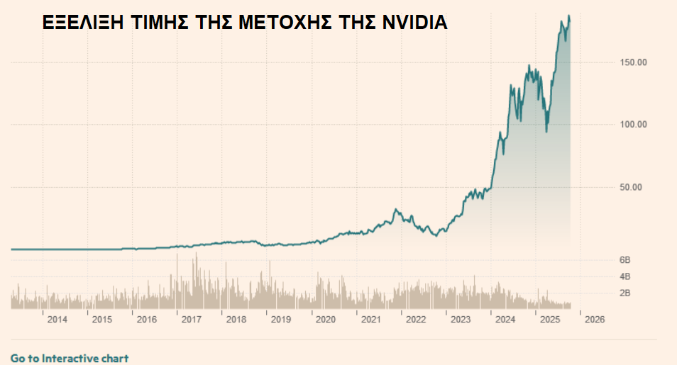 Στην τρέχουσα περίοδο η NVIDIA αποτελεί το επίκεντρο της λατρείας της αγοράς λόγω της έκρηξης της Τεχνητής Νοημοσύνης (ΑΙ), με την τιμή της μετοχής της να εκτοξεύεται από τα $12 του Οκτωβρίου του 2022, στα $181 μία τριετία αργότερα. Βασικός συντελεστής της θεαματικής ανόδου αποδεικνύεται το λογισμικό ChatGPT-3 της OPENAI, που εμφανίζεται τον Νοέμβριο του 2022 και λειτουργεί με τους καινοτόμους μικροεπεξεργαστές της εταιρείας.