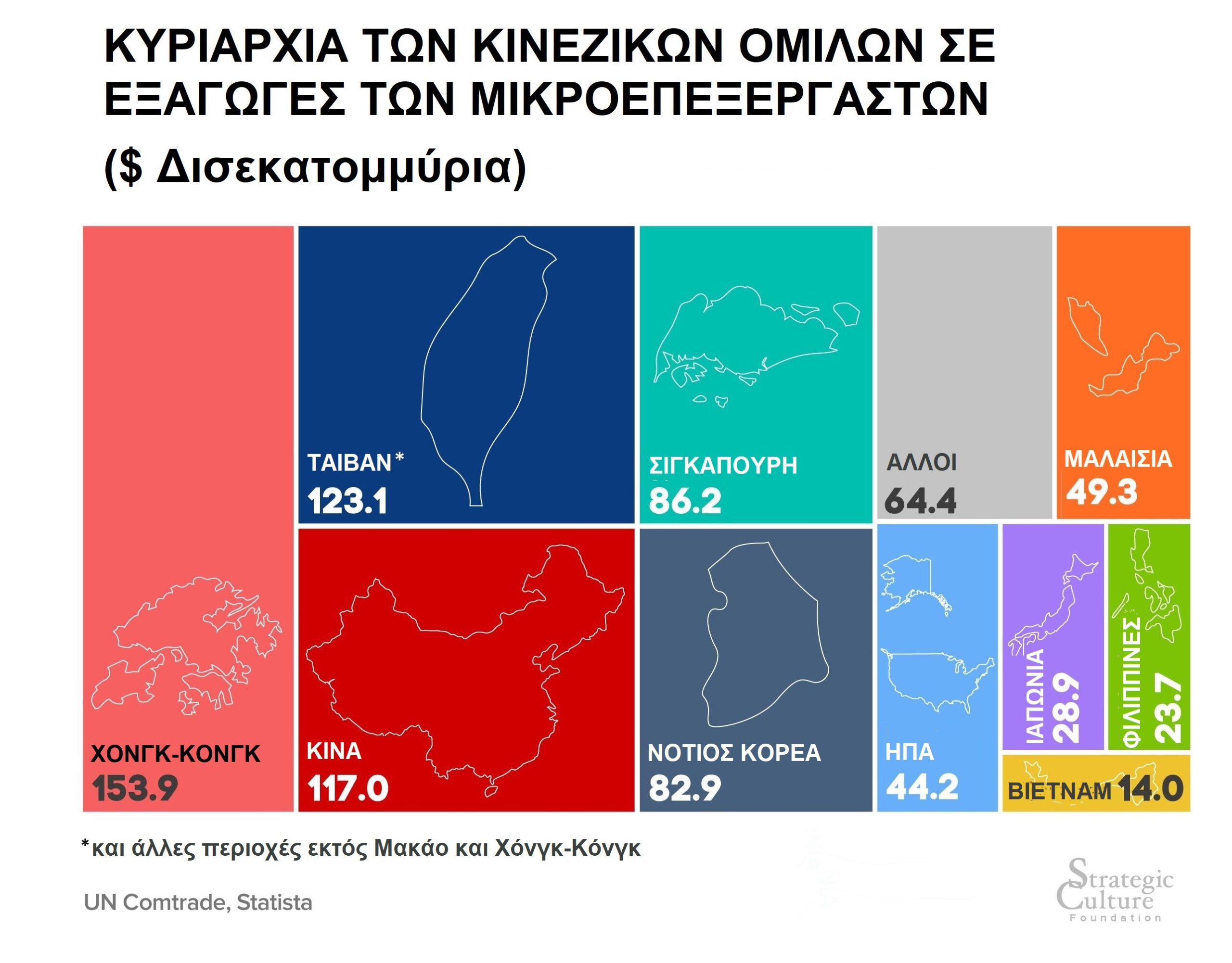 Η Κίνα ήδη ελέγχει στο συγκεκριμένο υπόλοιπο το 35% των εξαγωγών και διαθέτει την τεχνολογική δυναμικότητα να εξυπηρετεί με μία οργανωμένη εφοδιαστική αλυσίδα, που διακινεί ταυτόχρονα εξελιγμένους επεξεργαστές και σύντομα και φωτολιθογραφικές διατάξεις χάραξης Βαθιές Υπεριώδους Λιθογραφίας (Deep Ultraviolet Lithography-DUV). Ίσως ο κίνδυνος να εγκυμονείται στο νέο πενταετές του Πεκίνου που θέτει ιδιαίτερη έμφαση στην καινοτομία της πληροφορικής, με συνέπεια και παρά το γεγονός ότι οι υπεραγορασμένοι κλάδοι τείνουν να έχουν ανοδική διάρκεια μεγαλύτερη από ότι εκτιμάται φυσιολογικό και λογικό, τελικά να οδηγούνται σε φαινόμενα τύπου Dotcom.