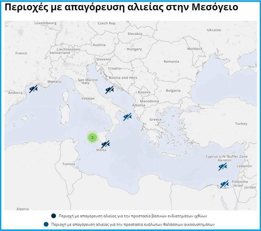 Επίσης ένα συναφές και πολύ σημαντικό για την αλιεία θέμα, η θέσπιση από τα κράτη των «Ζωνών προστασίας της Αλιείας» πράγμα που όλοι σχεδόν έχουν κάνει με εξαίρεση τη χώρα μας. Η ζώνη αυτή, είναι τμήμα της ανοικτής θάλασσας και η θέσπιση της για τα κράτη μέλη της ΕΕ αποφασίστηκε από τη Συνδιάσκεψη της Βενετίας στις 27 Νοεμβρίου 2003 (“Διακήρυξη της Βενετίας για τη Βιώσιμη Ανάπτυξη των Αλιευτικών Πόρων της Μεσογείου”) και η καθιέρωση αυτή δεν έχει γίνει ακόμη.