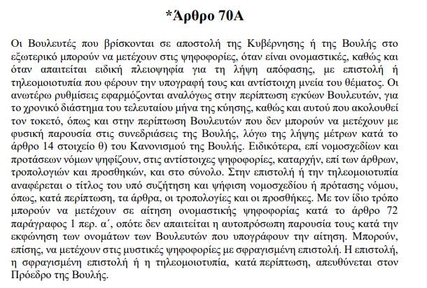 Χθες, όμως ήρθε το πραγματικό αποκορύφωμα: Κατά τη διάρκεια της κοινοβουλευτικής ψηφοφορίας για τη σύσταση προανακριτικής επιτροπής για το σκάνδαλο του ΟΠΕΚΕΠΕ και προκειμένου να διατηρήσει την εικόνα μιας “γαλάζιας” πλειοψηφίας, δεν δίστασε να καταπατήσει τον Κανονισμό της Βουλής, ο οποίος προβλέπει σαφώς ότι η καταφυγή στην επιστολική ψήφο προβλέπεται για σαφείς λόγους (απουσία, ασθένεια, κύηση), κάτι που μοιάζει κάπως δύσκολο να ισχύει ταυτόχρονα για 70 βουλευτές! Αν ξαφνικά δούμε ιατρικά δικαιολογητικά σωρηδόν, θα πρέπει σίγουρα να αναρωτηθούμε!