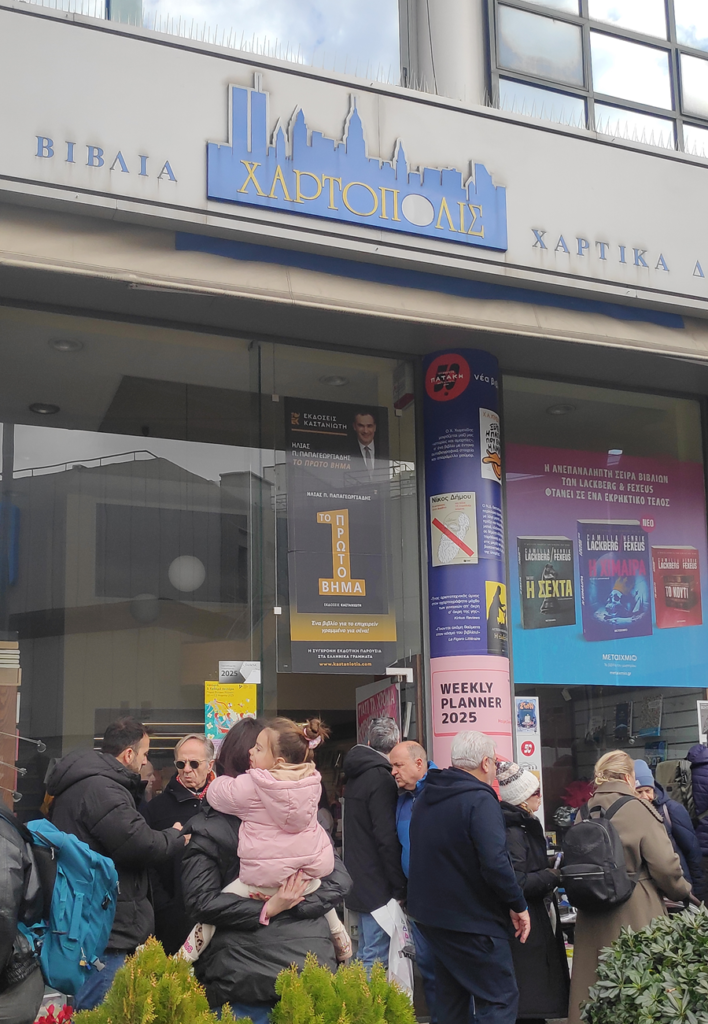 Οι παρευρισκόμενοι στο κάλεσμα για την βιβλιοπαρουσίαση, ήρθαν οικογενειακά κι έβλεπες νέους γονείς με μωρά στα καροτσάκια, ανθρώπους που εκμεταλλεύτηκαν την έξοδο, παρά το κρύο, με τα σκυλάκια τους και κυρίες κυρίως που μετέφεραν ένα καλό λόγο κι ευχές στον Στέφανο Κασσελάκη για επιτυχία στην πολιτική του διαδρομή, διατρανώνοντας την στήριξή τους.