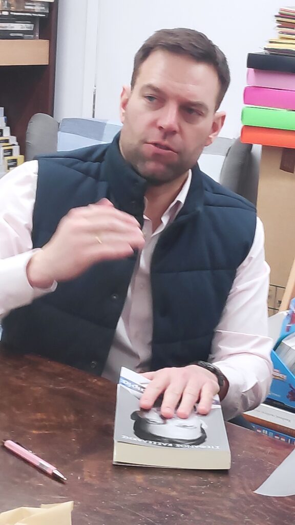 Στο εμφανές ξέσπασμα ενός κυρίου που είχε προμηθευτεί τρία βιβλία και περίμενε για την ιδιόγραφη υπογραφή από τον κ. Κασσελάκη, λέγοντας ότι όντας αριστερός με αγώνες, πλέον διαψεύστηκε, αφού χάθηκε η βασική έννοια της αλληλεγγύης στο ΣΥΡΙΖΑ και υπάρχει η απόλυτη κατάρρευση, ο πρόεδρος του Κινήματος Δημοκρατίας του απάντησε: “Αυτό δεν είναι αριστερά!”