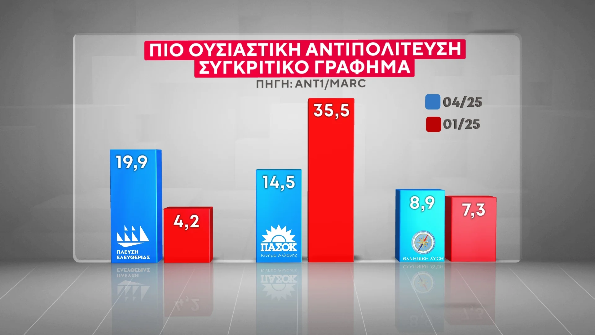Το πρώτο μέρος της μεγάλης δημοσκόπησης της MARC για τον ΑΝΤ1 παρουσιάστηκε απόψε, Τετάρτη 2 Απριλίου, στο κεντρικό δελτίο ειδήσεων του ΑΝΤ1 με τον Νίκο Χατζηνικολάου. Η έρευνα πραγματοποιήθηκε το διάστημα 27 Μαρτίου με 1 Απριλίου 2025 και διεξήχθη σε πανελλαδική εμβέλεια, με πληθυσμό 1139 άτομα, άνδρες και γυναίκες με δικαίωμα ψήφου.