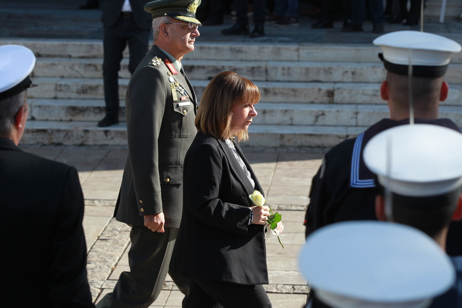 Στο έργο και τη διαδρομή του Κώστα Σημίτη αναφέρθηκε στον επικήδειό της από τη Μητρόπολη Αθηνών και η Πρόεδρος της Δημοκρατίας, Κατερίνα Σακελλαροπούλου.
