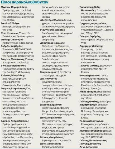 Αναλυτικά, η νέα λίστα με τα ονόματα για τις υποκλοπές που δημοσιεύει το Documento είναι η ακόλουθη: