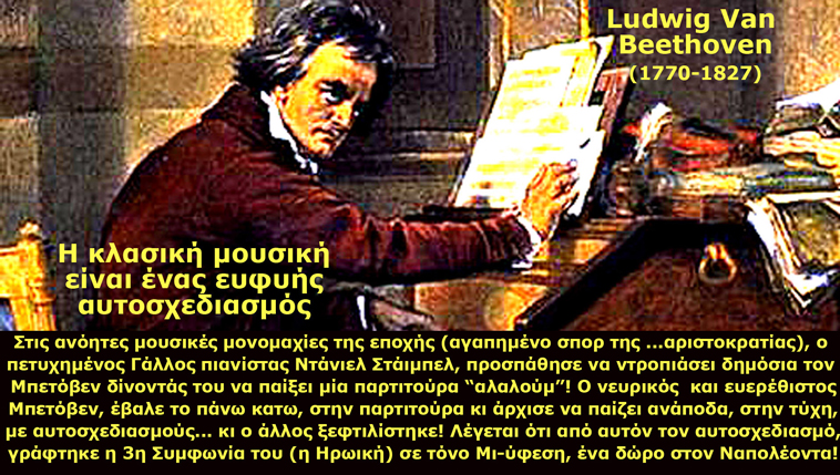 Γι’ αυτό, τα κλασικά έργα, δεν έπρεπε να ονομάζονται “μουσικές”… Έχω προτείνει να ονομάζονται “ευφυείς αυτοσχεδιασμοί”, γιατί ακριβώς “έτσι” δημιουργήθηκαν! “Αυτοσχεδιαστικά” είναι όλα τα κονσέρτα του I.S.Bach και οι Τοκάτες-Φούγκες του! Μάλιστα οι “Γαλλικές σουίτες”, του (BWV, 812-817), δεν είναι έργο …εμπνευσμένο, αλλά (όπως αποδείχτηκε) ασκήσεις πιάνου για τους μαθητές του!