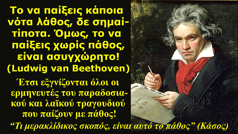 Για να μην παρεξηγήσετε τη σχέση μου με την κλασική μουσική, σας “αποκαλύπτω” ότι στο μουσικό στικάκι του αυτοκινήτου μου, το 7% είναι κλασική μουσική! Είναι τεράστιο το ποσοστό, αν σκεφτείτε ότι ο Χατζιδάκις είναι στο 3,2%, το ρόκ στο 1,3%, τα λατινοαμερικάνικα στο 3,5%, τα παραδοσιακά μας στο 11,4% και στοπ οι …αποκαλύψεις! (Και για να μην κάνει κάποιος, “ισοπεδωτικές” σκέψεις, σας αναφέρω ότι σε ένα τραγούδι μου, συμπεριέλαβα τον Μπαχ, ως “ιερό φυλακτό”) Και κάτι άλλο και σημαντικό: Το παρόν κείμενο “ΔΕΝ” αποτελεί κανενός είδους “σχόλιο”, στις οποιεσδήποτε μουσικές σας προτιμήσεις!