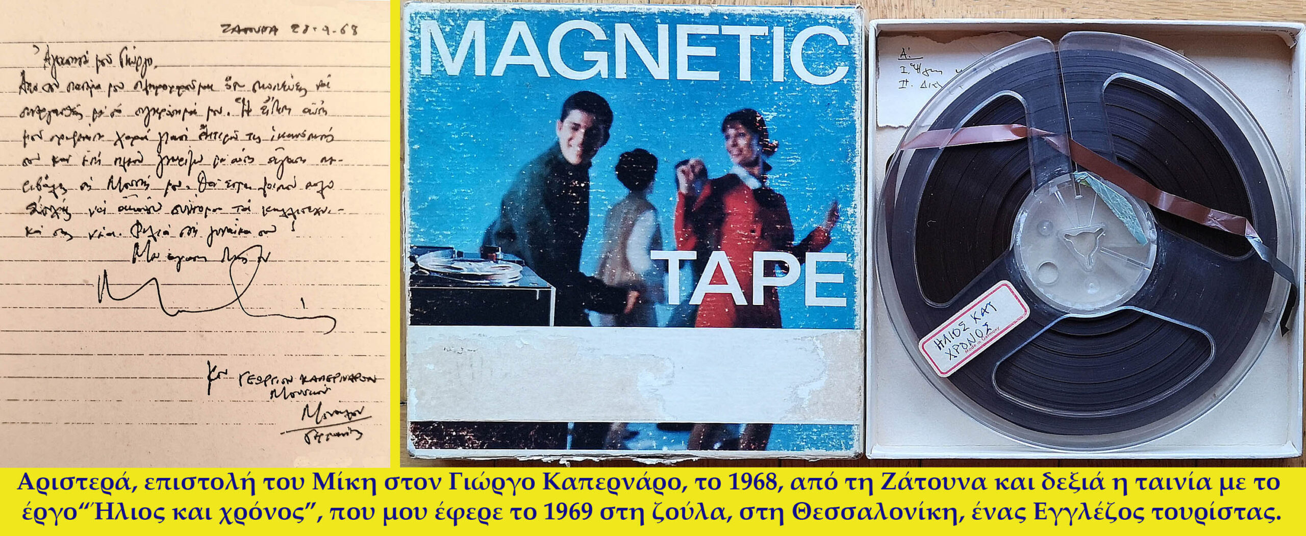 Το έλαβα ιεροκρυφίως από το εξωτερικό, σε μαγνητοταινία, το 1969, στην ηχογράφηση που έγινε (μάλλον στο Μόναχο) με τον Γιώργο Καπερνάρο και την Μαρία Δημητριάδη. Μου το ενεχείρισε ένας Εγγλέζος τουρίστας, 35άρης, ιδιαίτερα μαλλιαρός, χιπαριό κανονικότατο, σταλμένο από έναν φίλο μου που το είχε σκάσει στην Αγγλία!